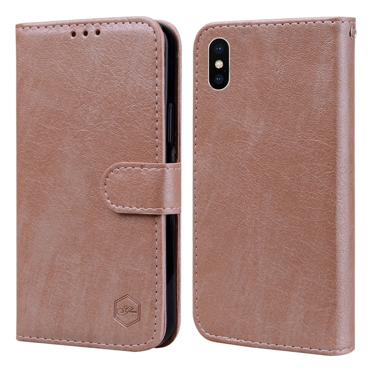 Funda para Teléfono iPhone X / Xs Textura de Cuero Aceitoso PU + TPU (Champán)