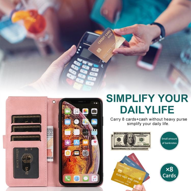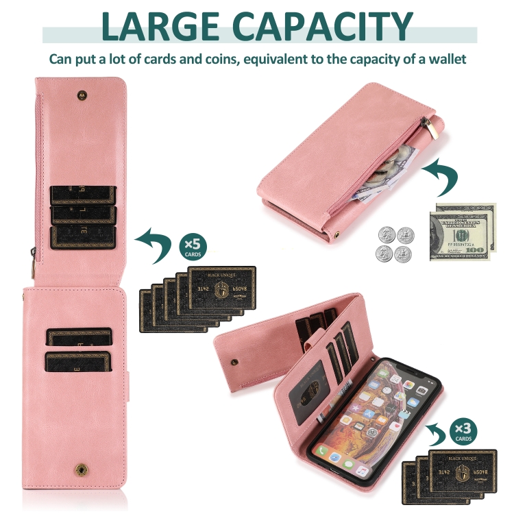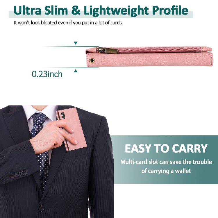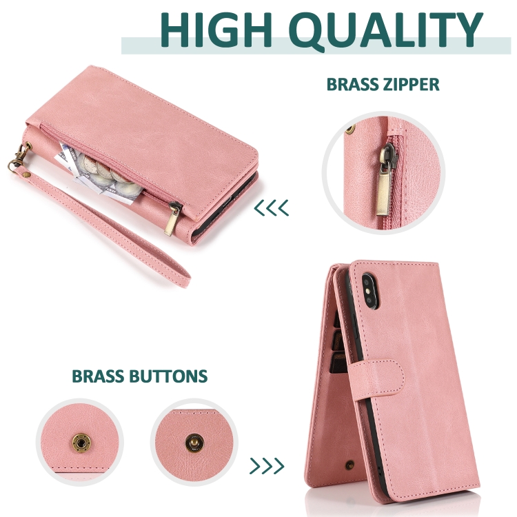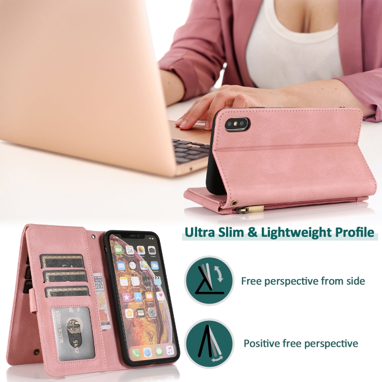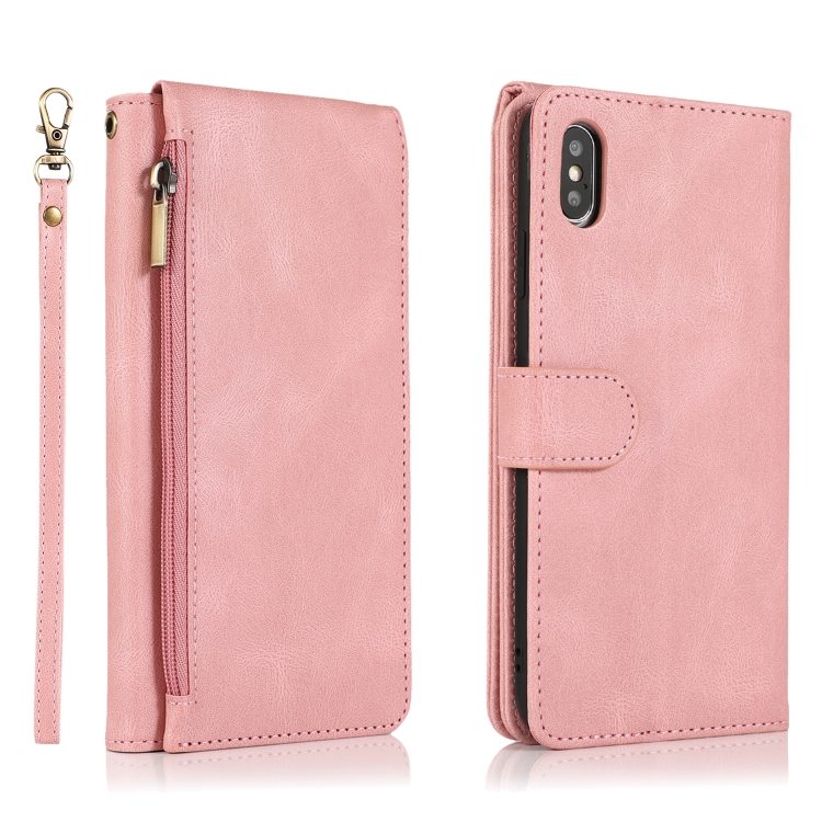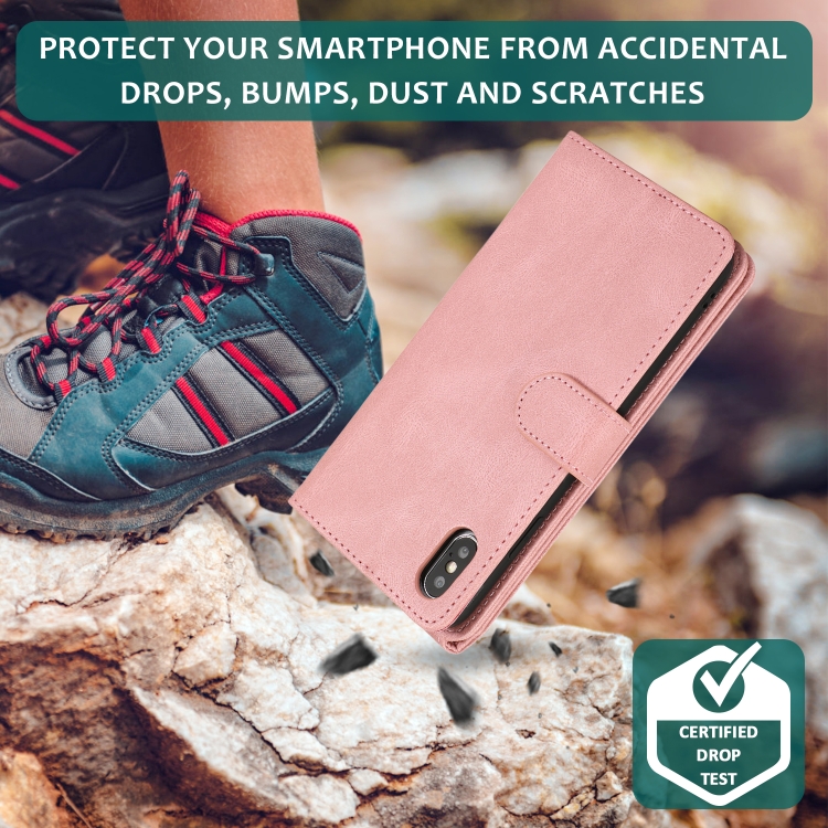 Estuche para iPhone X Xs Skin-Feel Crazy Horse Wallet Bag con Tapa Horizontal Soporte Ranuras y Cordón (Oro Rosa)