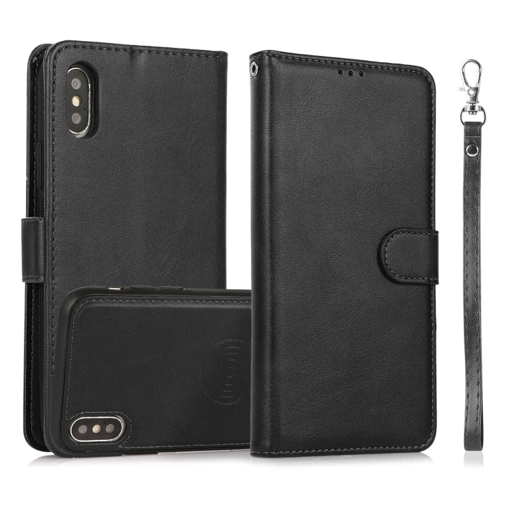 Funda para iPhone X Xs Textura de Becerro 2 En 1 Cubierta Trasera Magnética Desmontable con Tapa Horizontal Soporte Ranuras y Marco de Fotos (Negro)