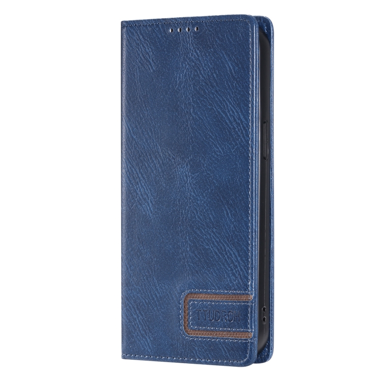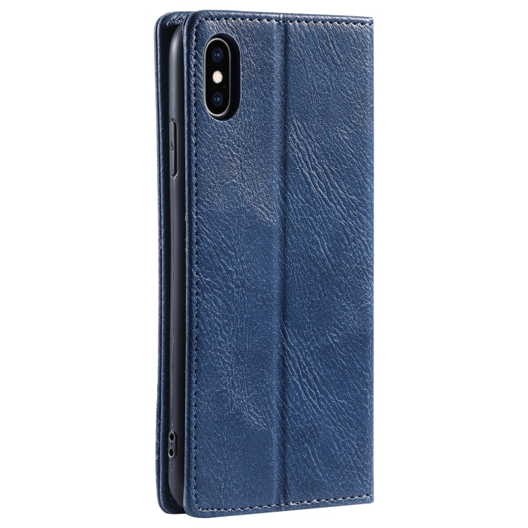 Funda de teléfono Ttudrch para iPhone X / Xs cuero magnético con textura retro (Azul)