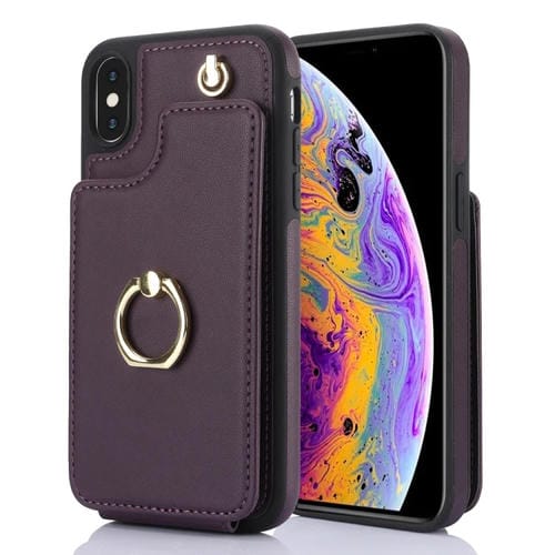 Funda para teléfono Ym005 Skin Feel Card Bag para iPhone X y Xs con cordón largo (Púrpura Oscuro)