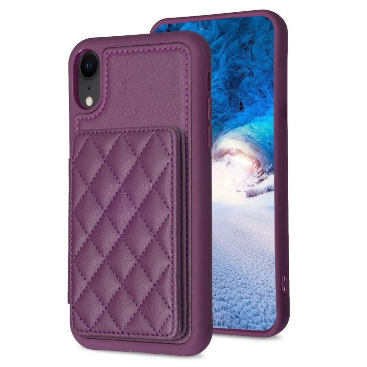 Funda para Teléfono iPhone Xr Bf25 Square Plaid Card Bag Holder (Morado Oscuro)