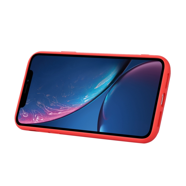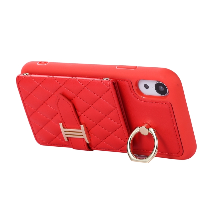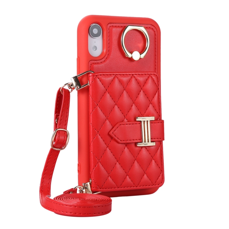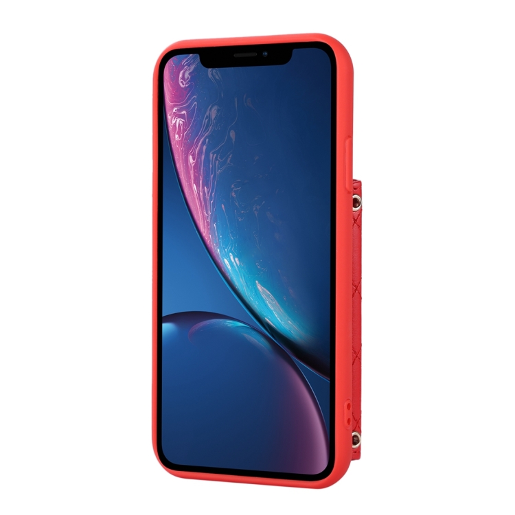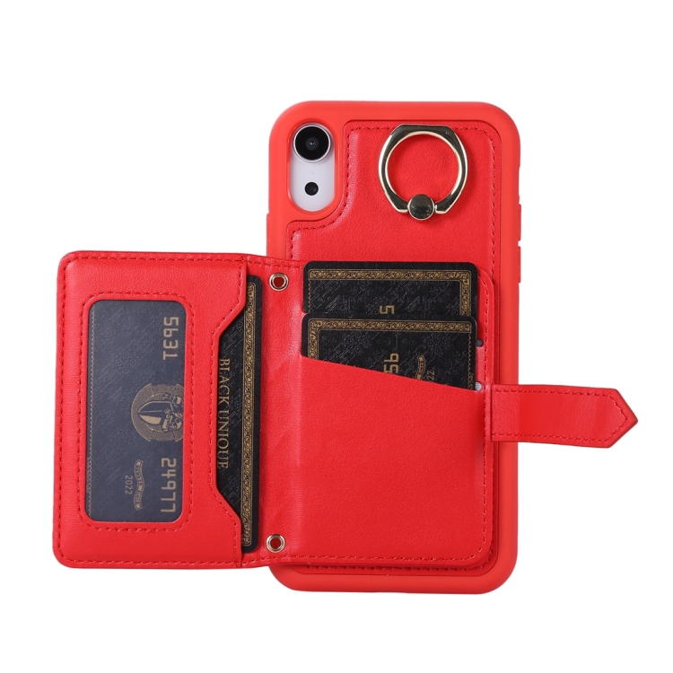 Funda para Teléfono iPhone Xr Bolsa de Tarjeta Horizontal con Soporte de Anillo y Cordón Doble (Rojo)