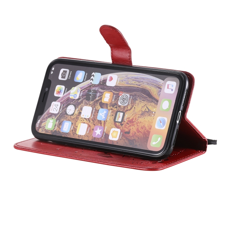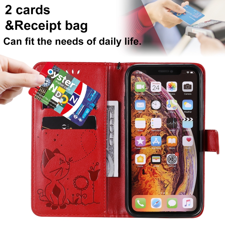 Funda de Cuero Cat Bee para iPhone Xr con Tapa Horizontal, Soporte y Ranuras para Tarjetas (Rojo)