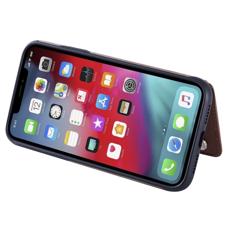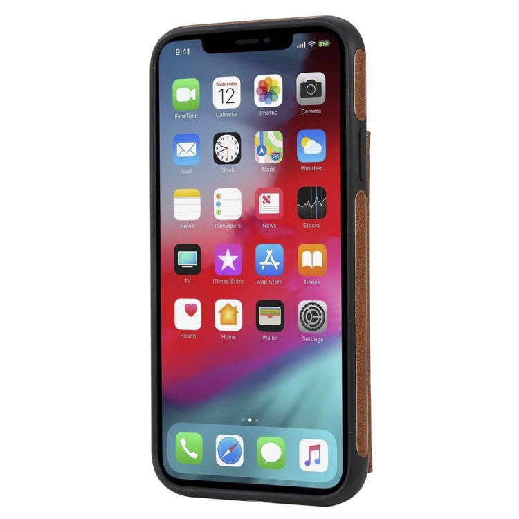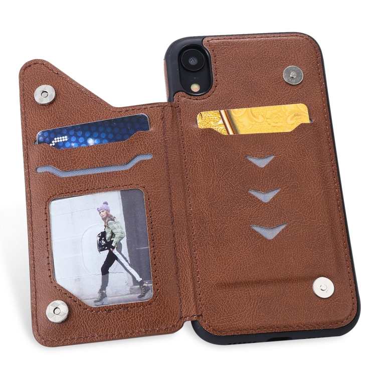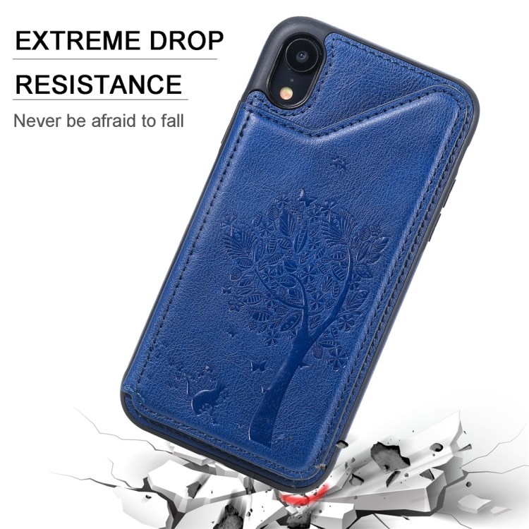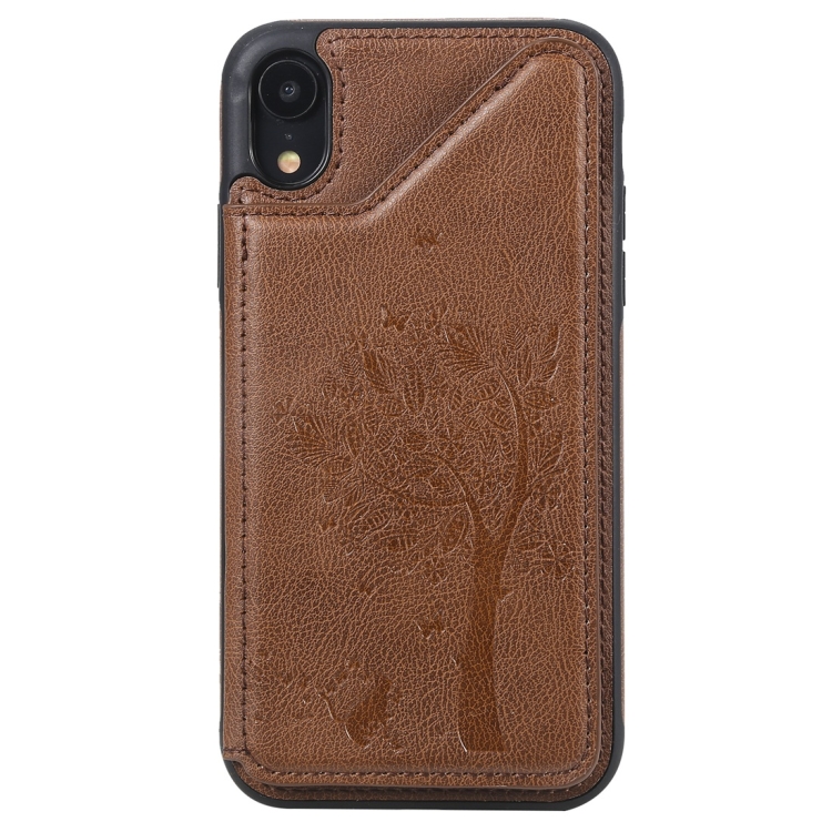 Estuche protector para iPhone Xr Cat Tree Embossing Pattern a prueba de golpes con ranuras para tarjetas y marco de fotos (Marrón)