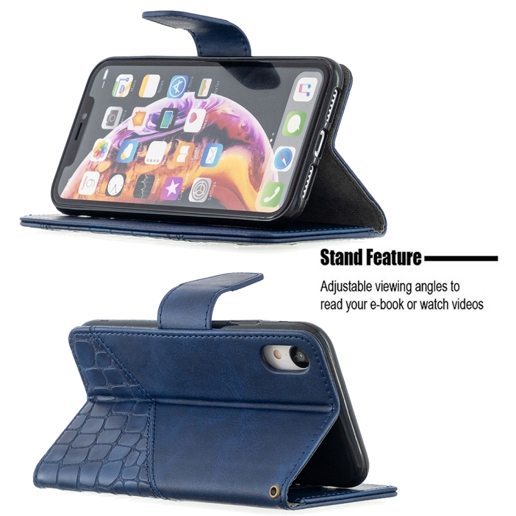 Funda para iPhone Xr Cuero de PU Textura Cocodrilo con Tapa Horizontal Billetera y Soporte (Azul)