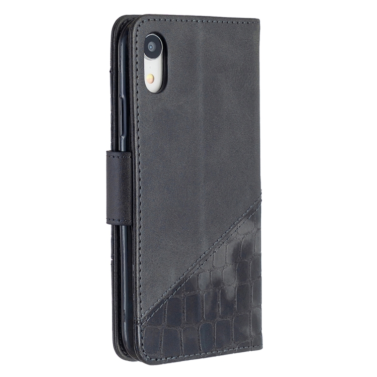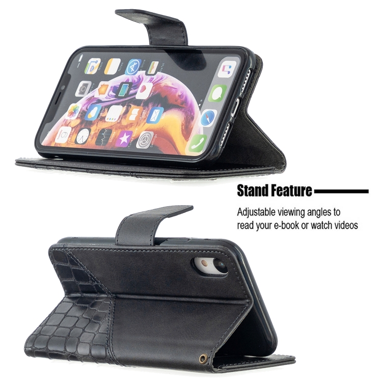 Funda para iPhone Xr Cuero de Pu Textura Cocodrilo con Tapa Horizontal Billetera Soporte Ranuras para Tarjetas (Negro)