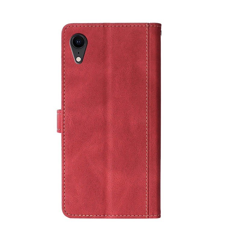 Funda para iPhone Xr Cuero PU Cosido Hebilla Magnética Tapa Horizontal Soporte Ranuras Tarjetas Billetera (Rojo)