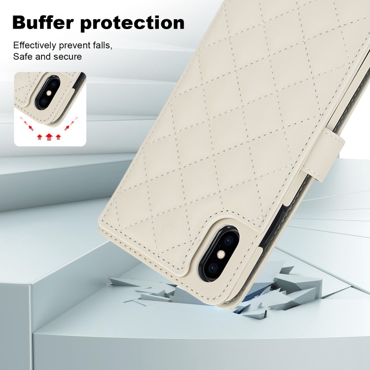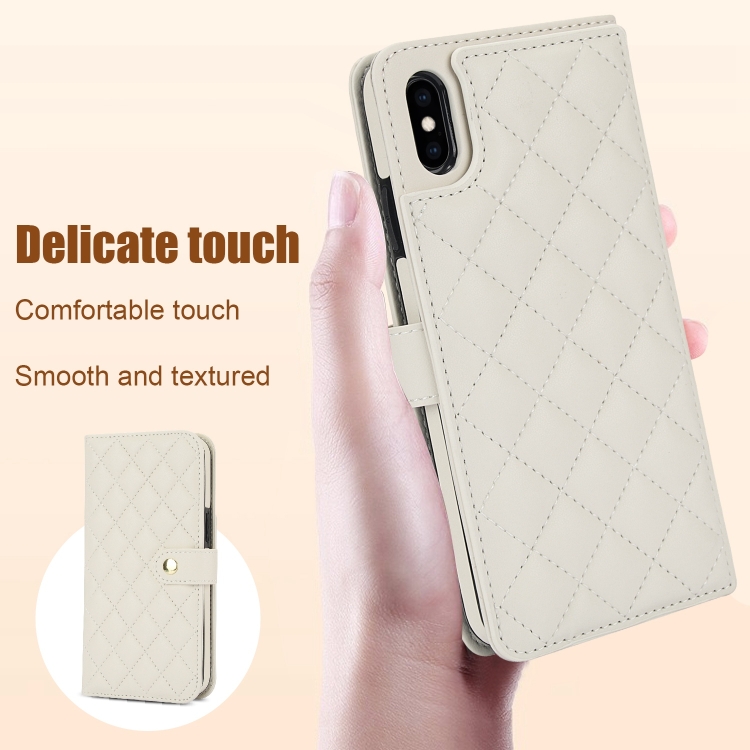 Estuche para Teléfono iPhone Xr Crossbody Cuero Rómbico Multifunción (Blanco)