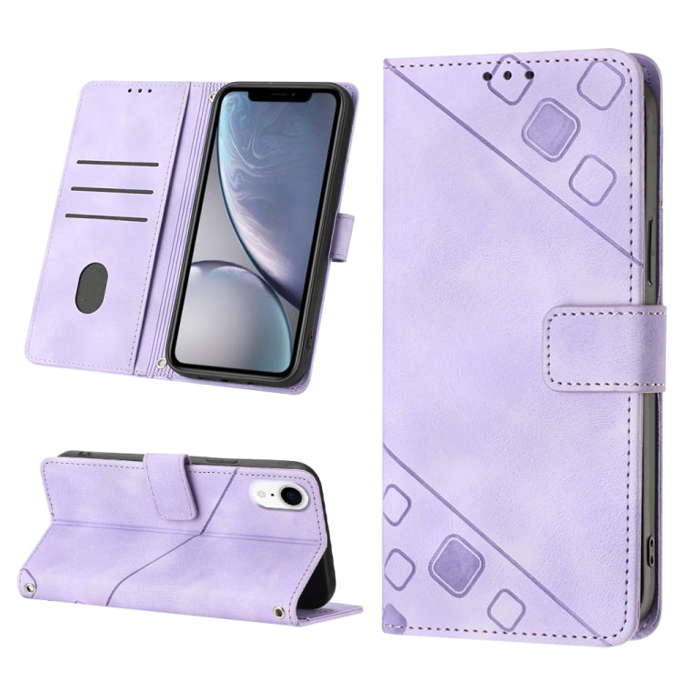 Estuche para teléfono iPhone Xr cuero en relieve sensación de piel (Púrpura Claro)