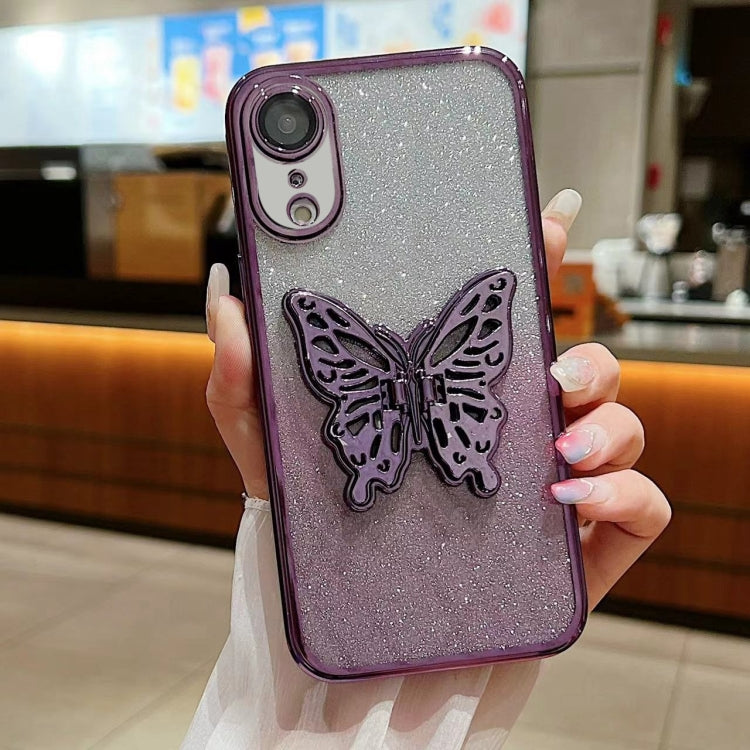Estuche para Teléfono TPU iPhone Xr Mariposa 3D Brillo Degradado Galvanizado (Púrpura Degradado)