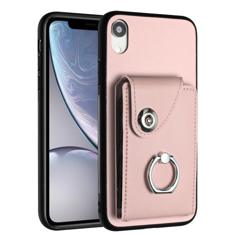 Funda para Teléfono iPhone Xr con Soporte para Anillo y Bolsa para Tarjeta de Órgano (Rosa)