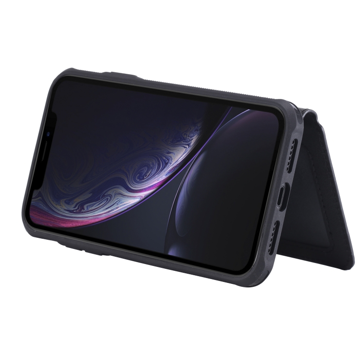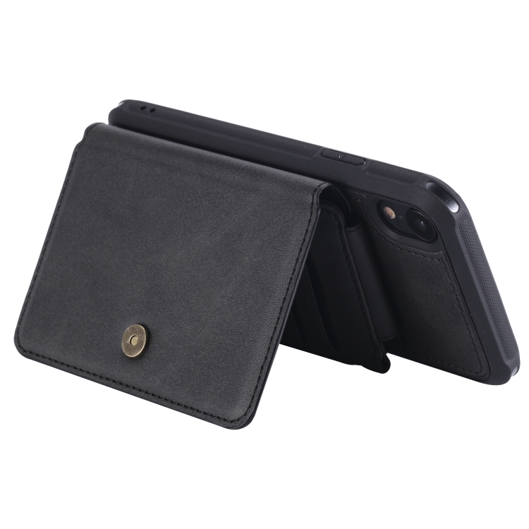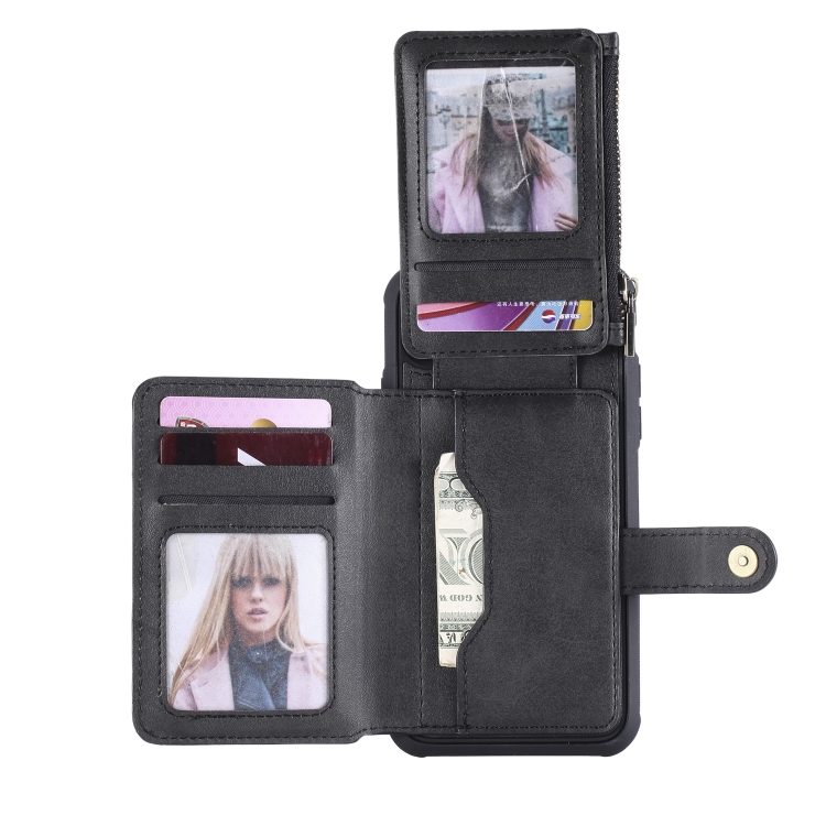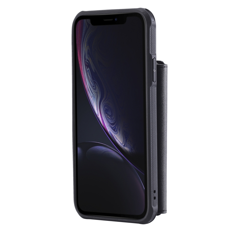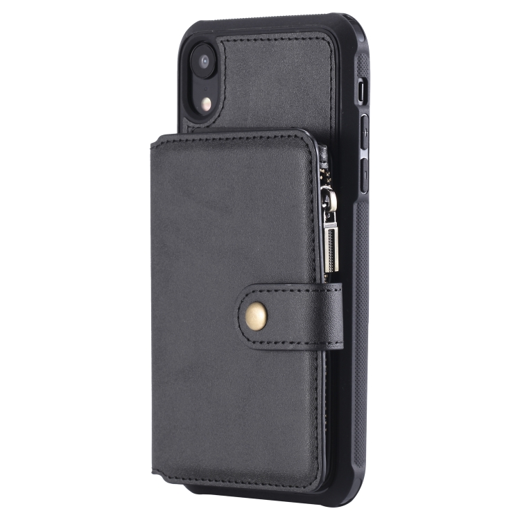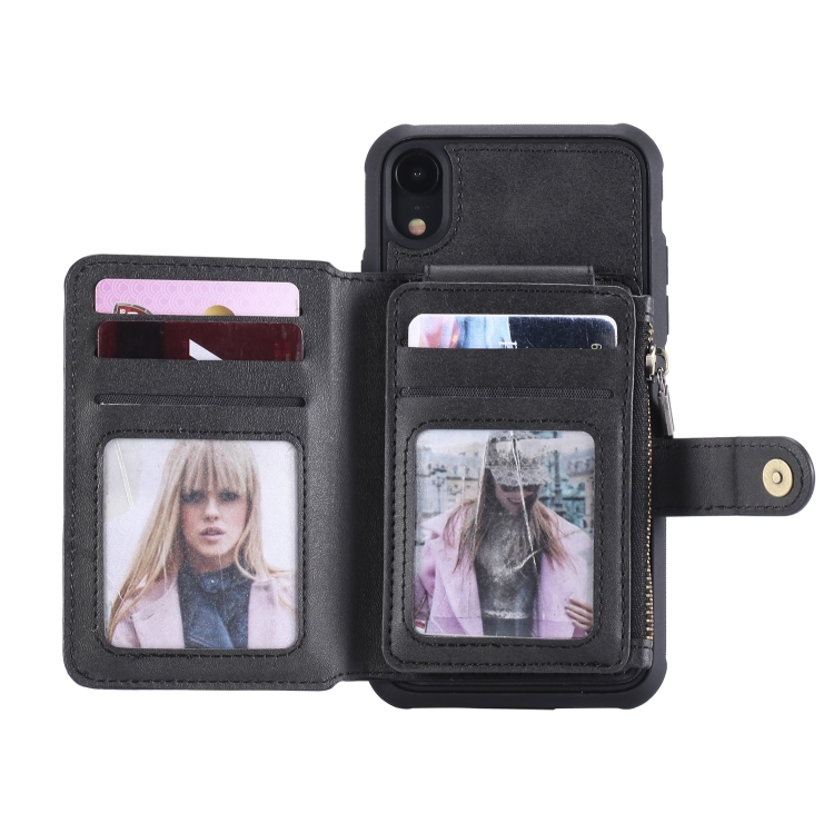Funda Protectora para iPhone Xr con Cremallera Ranuras para Tarjetas Soporte Fotos Función Billetera (Negro)