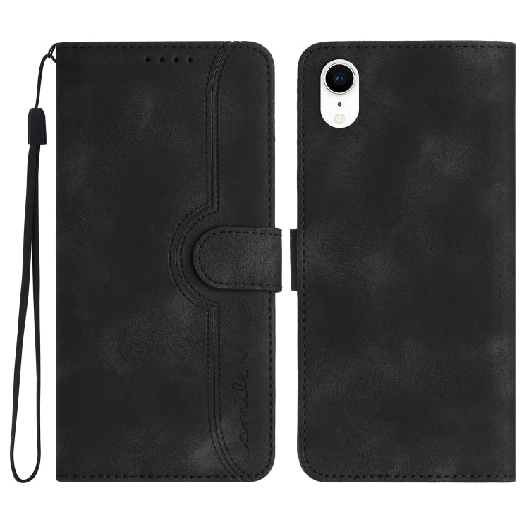 Funda para iPhone Xr Skin Feel Leather con patrón de corazón (Negro)