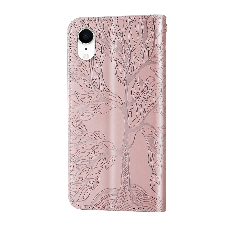 Estuche de Cuero para iPhone Xr Life Of Tree con Tapa Horizontal Soporte Ranura Tarjeta Billetera Marco Fotos Cordón (Oro Rosa)