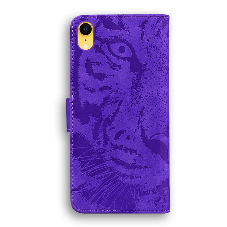 Funda de Cuero para iPhone Xr Tiger Embossing Pattern con Tapa Horizontal Soporte Ranuras Tarjetas Billetera (Púrpura)