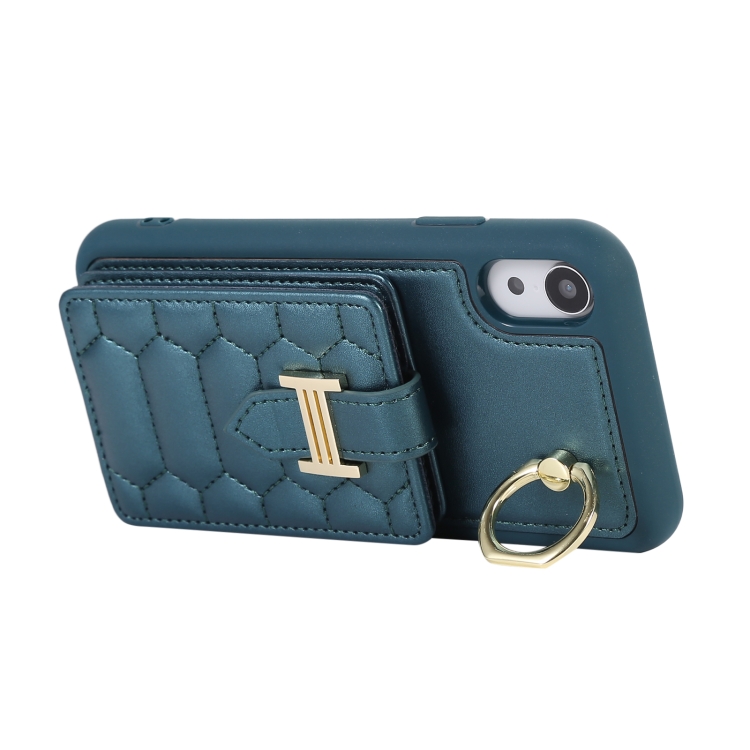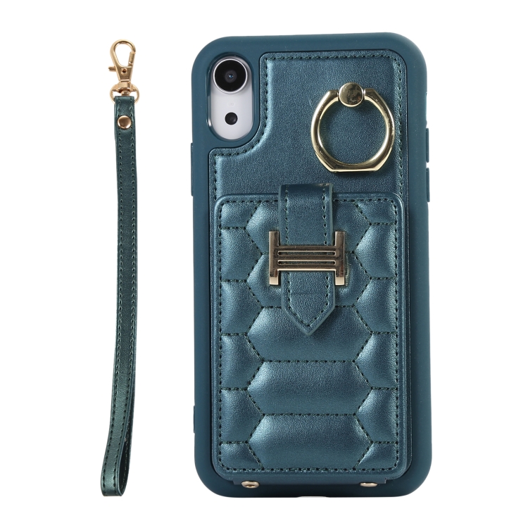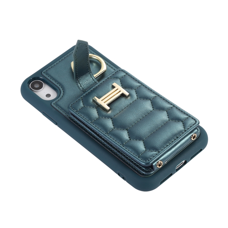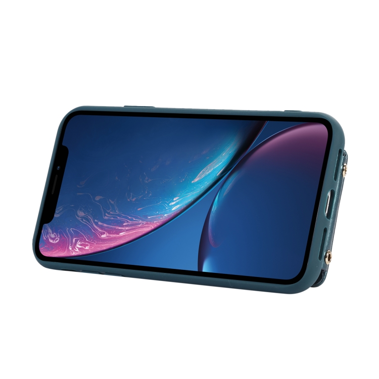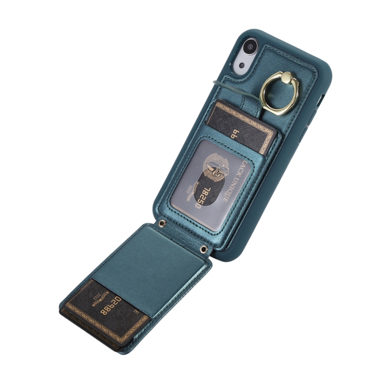 Funda para teléfono iPhone Xr Vertical Card Bag Ring Holder con doble cordón (Verde Oscuro)
