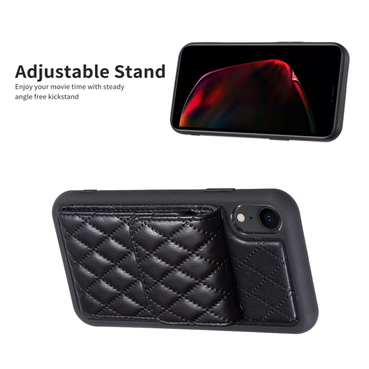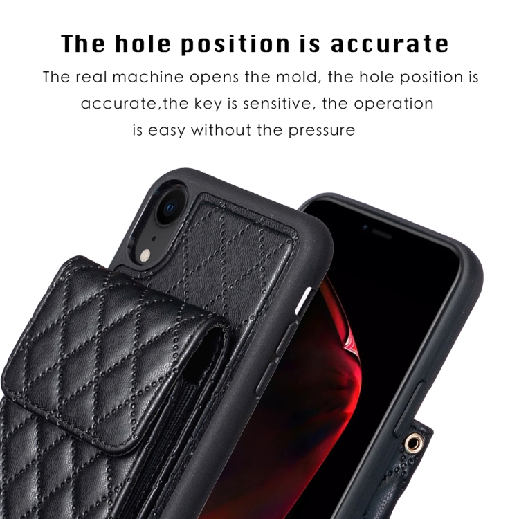 Funda para iPhone Xr Vertical Wallet Rhombic Leather Phone Case (Negro)