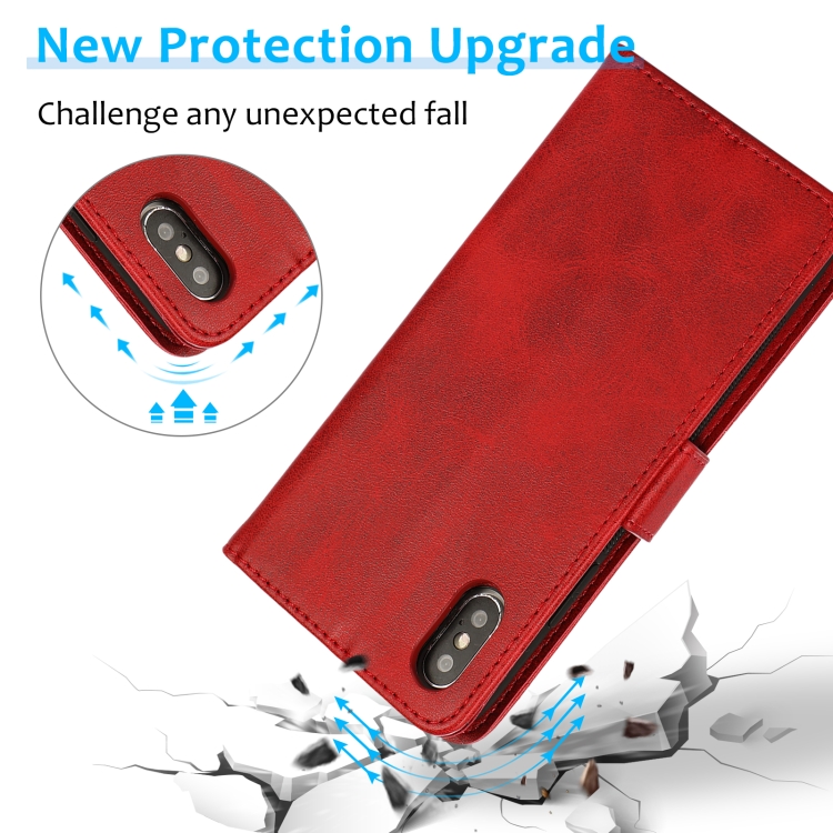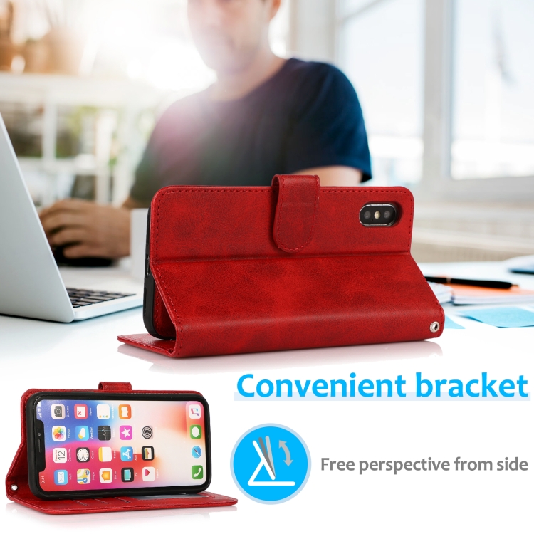 Funda para iPhone Xs Max Calf Texture 2 en 1 Cubierta Trasera Magnética Desmontable con Tapa Horizontal y Soporte (Rojo)