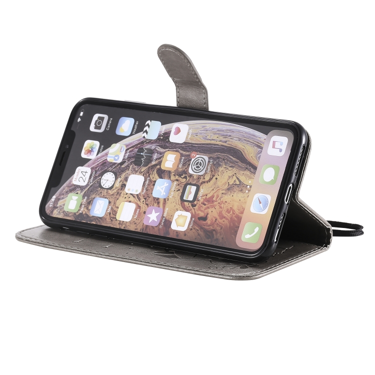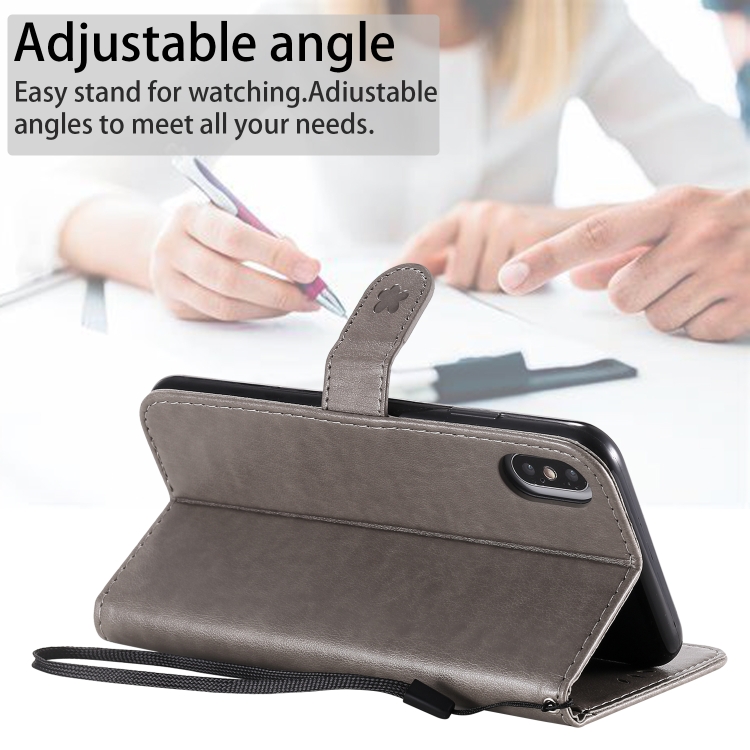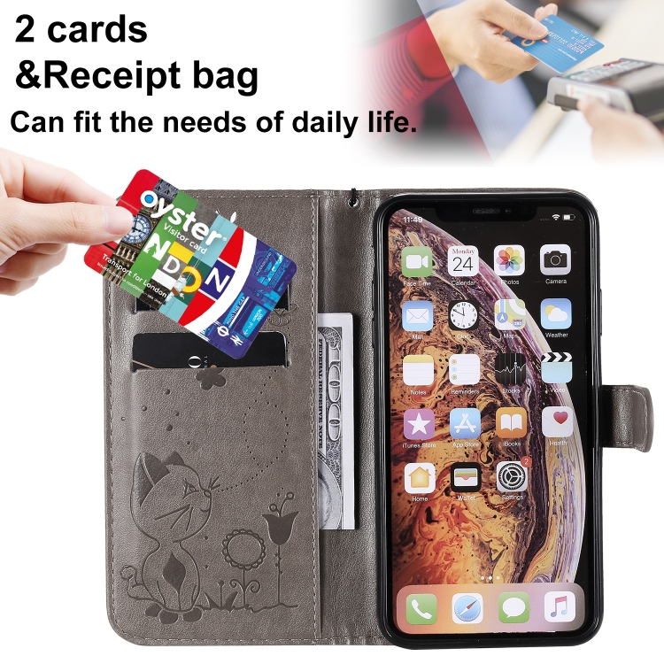 Funda de Cuero Cat Bee para iPhone Xs Max con Tapa Horizontal, Soporte y Ranuras para Tarjetas (Gris)