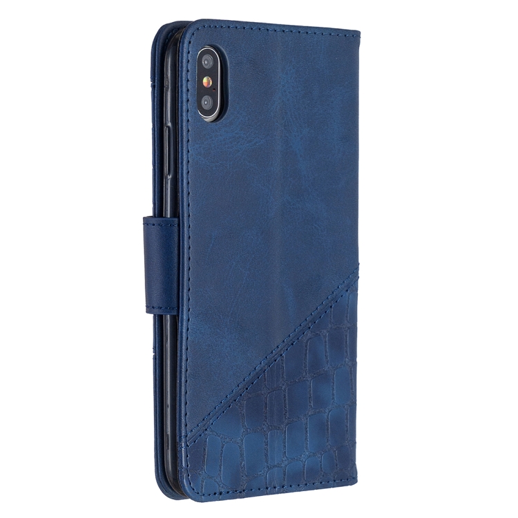 Funda para iPhone Xs Max Cuero de PU Textura Cocodrilo con Tapa Horizontal Billetera Soporte y Ranuras para Tarjetas (Azul)