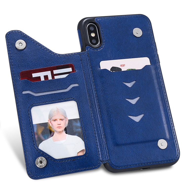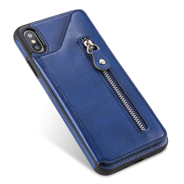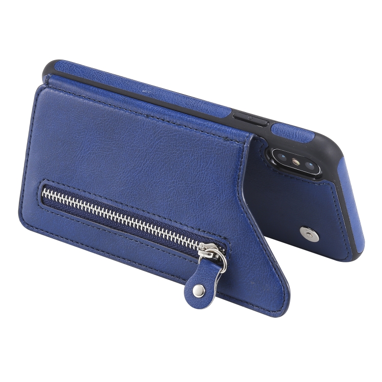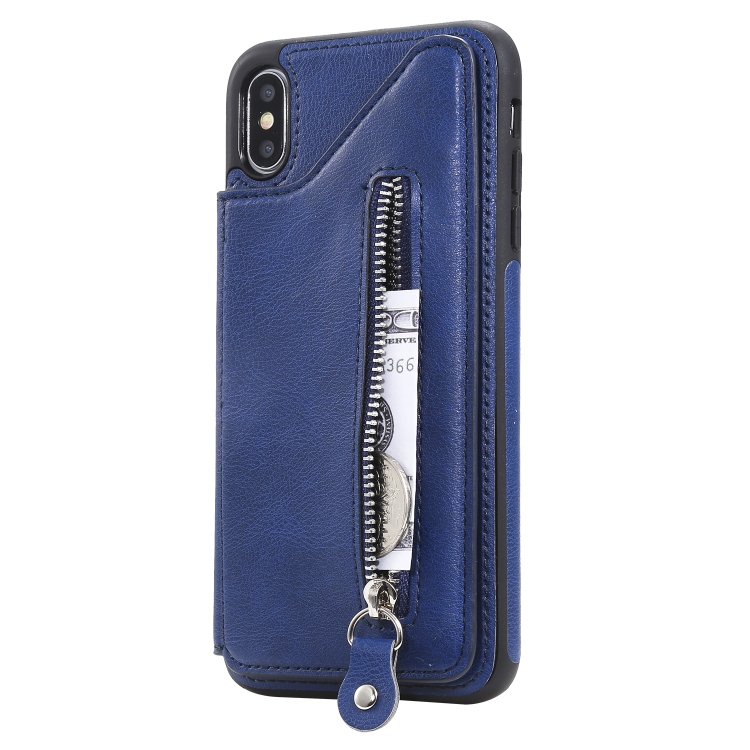 Funda Protectora para iPhone Xs Max Doble Hebilla Cremallera a Prueba de Golpes (Azul)