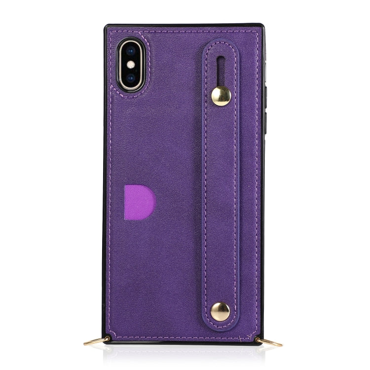 Correa para Muñeca Pu + TPU Estuche Protector para iPhone Xs Max a Prueba de Golpes con Cordón Cruzado Soporte y Ranura para Tarjeta (Púrpura)