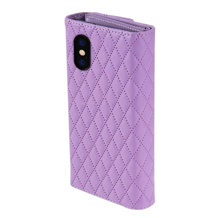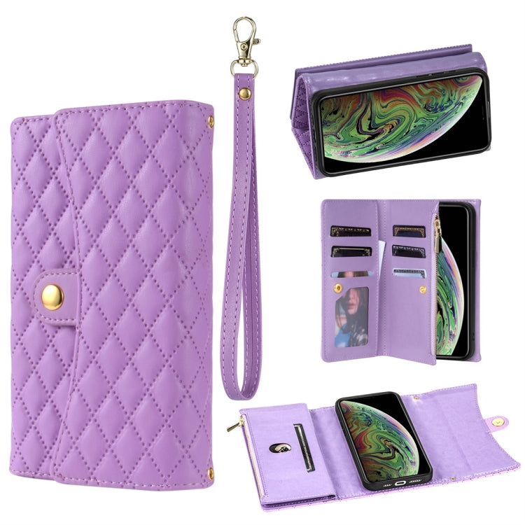 Estuche para Teléfono iPhone Xs Max Cuero Rómbico Billetera MultiTarjeta con Cremallera (Púrpura)