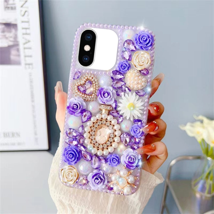 Funda para Teléfono iPhone Xs Max con Incrustaciones de Diamantes y Rosas para PC (Púrpura)