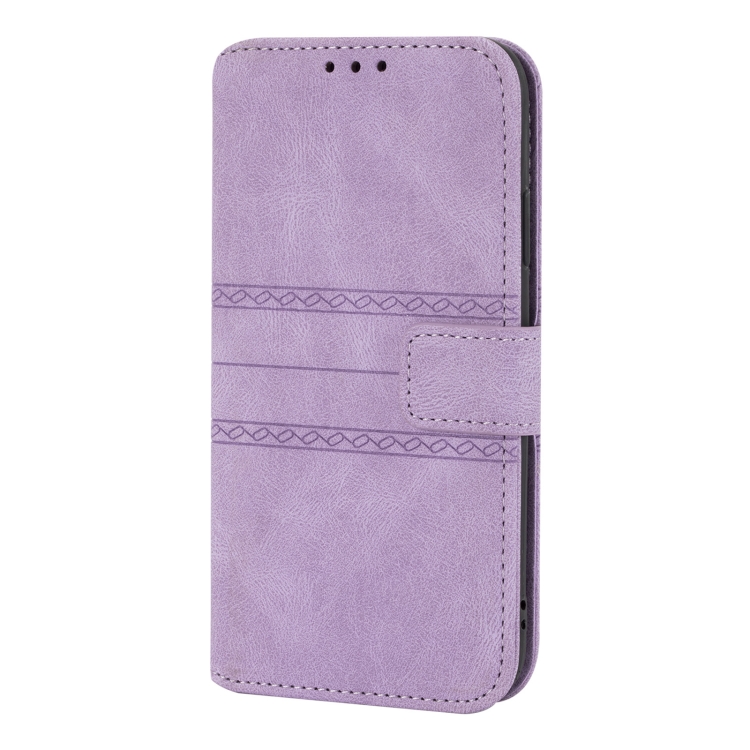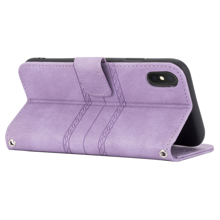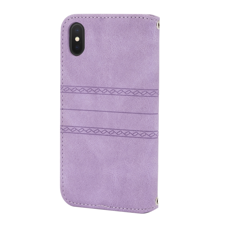 Estuche para iPhone Xs Max PU + TPU Hebilla Magnética a Rayas con Soporte Ranura Tarjeta Billetera Marco Fotos Eslinga (Púrpura)