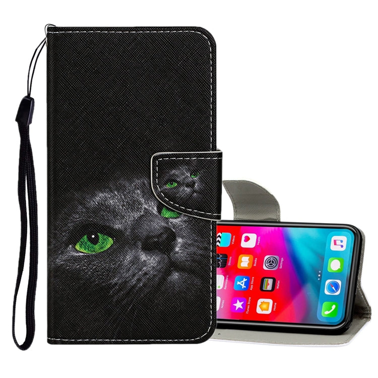 Estuche de Cuero para iPhone Xs Max con Patrón de Dibujo, Tapa Horizontal, Soporte y Ranuras para Tarjetas (Gato Negro)