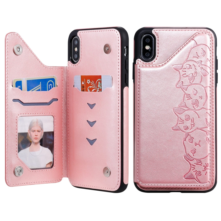 Estuche Protector para iPhone Xs Max Six Cats con Patrón de Relieve Soporte Ranuras Tarjetas Marco de Fotos (Oro Rosa)