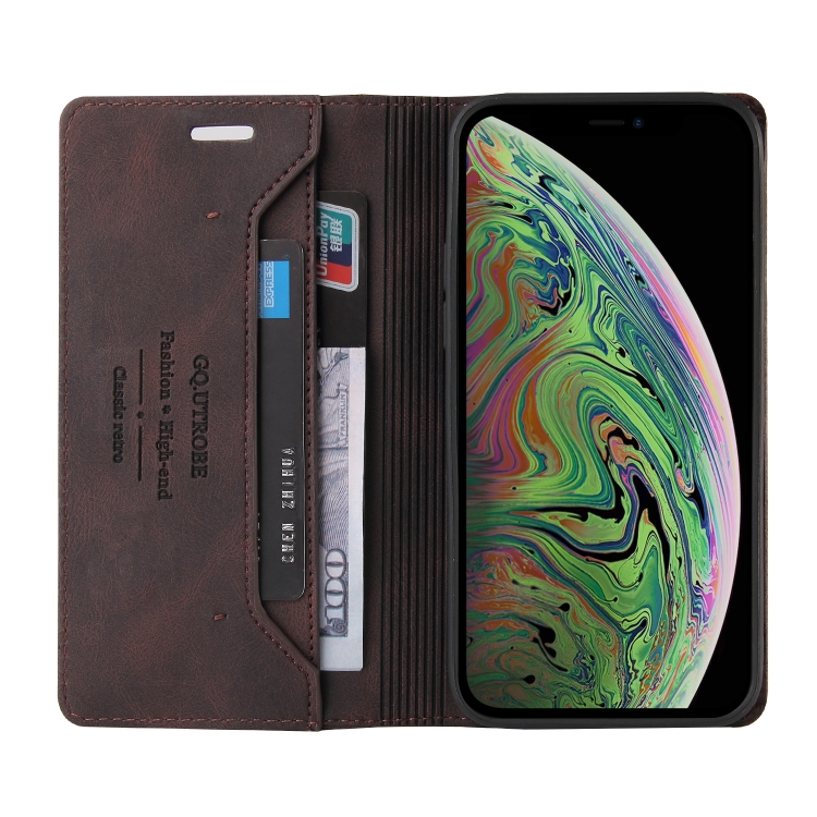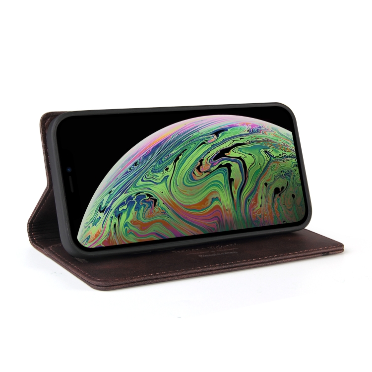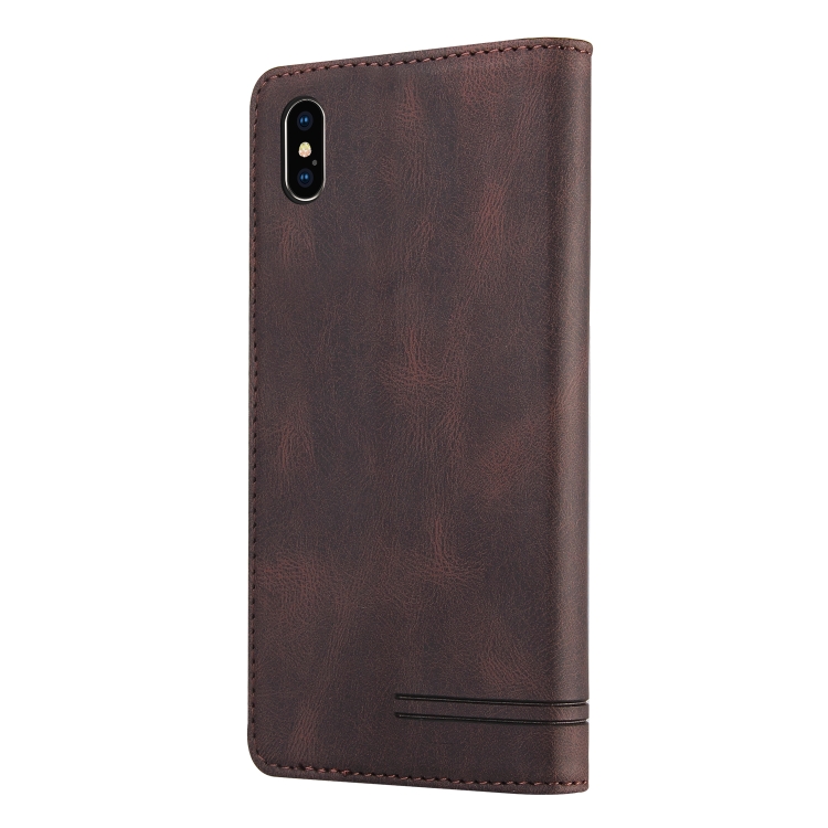 Funda para iPhone Xs Max Skin Feel Cepillo Antirrobo Cuero Tapa Horizontal Soporte Ranuras Tarjetas Billetera (Marrón)