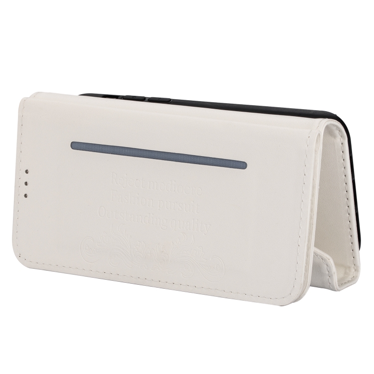 Funda de Cuero para iPhone Xs Max Skin Feel con Tapa Horizontal, Soporte, Ranuras para Tarjetas, Marco de Fotos, Cordón y Cuerda Larga (Blanco)