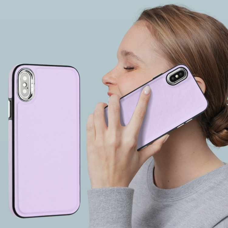 Funda para Teléfono iPhone Xs Max Textura de Cuero Cobertura Completa (Púrpura)