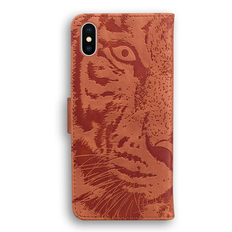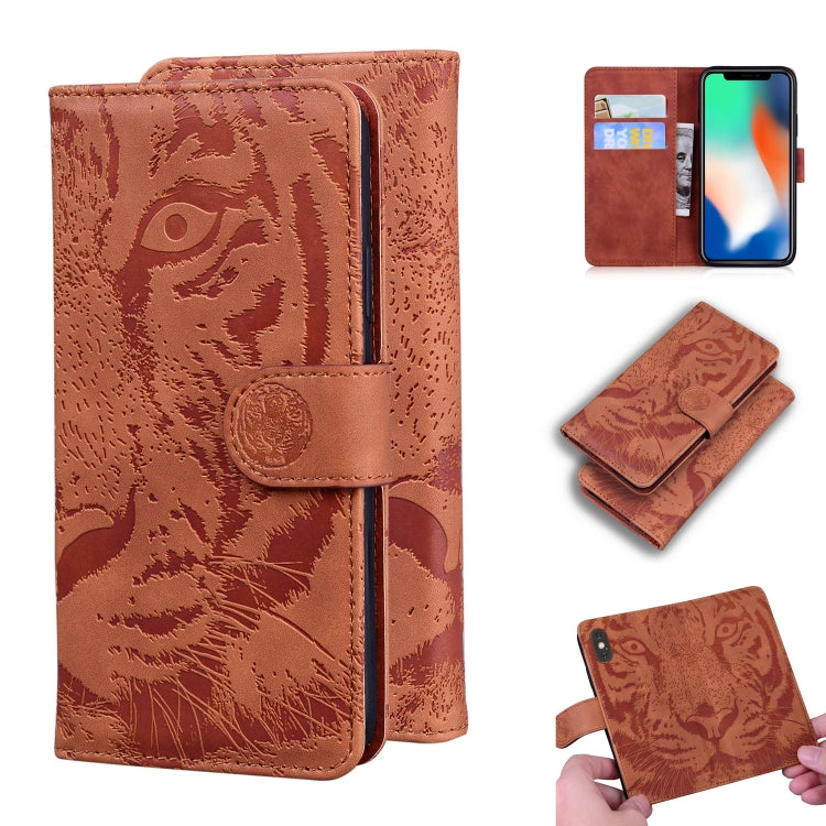 Estuche de Cuero para iPhone Xs Max Tiger Embossing con Tapa Horizontal Soporte Ranuras y Billetera (Marrón)