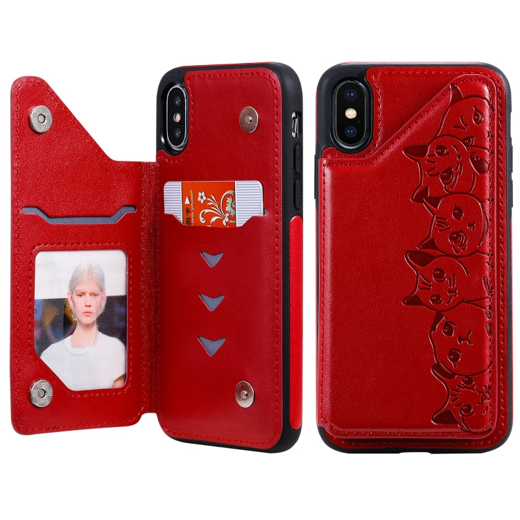 Estuche Protector para iPhone Xs Six Cats con Patrón en Relieve Soporte Ranuras para Tarjetas y Marco de Fotos (Rojo)
