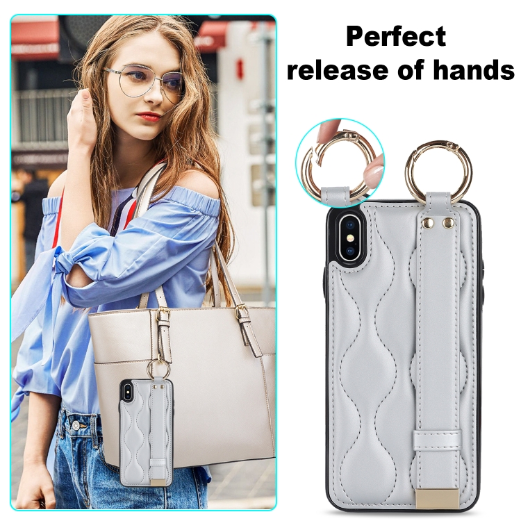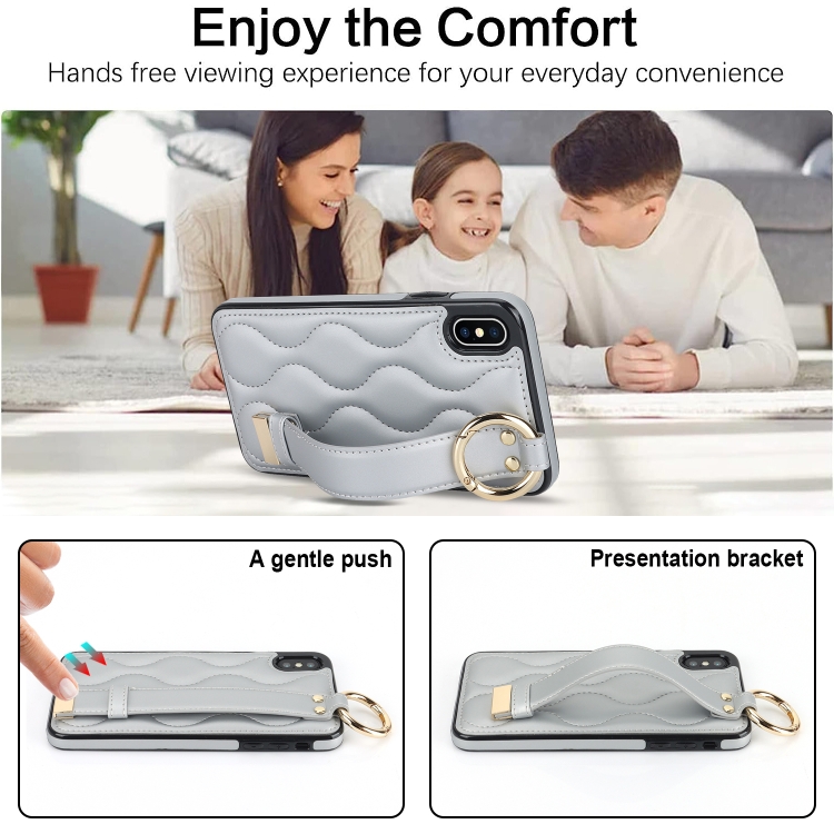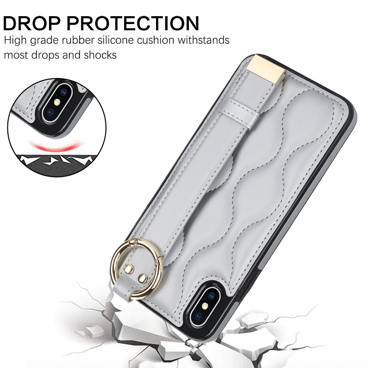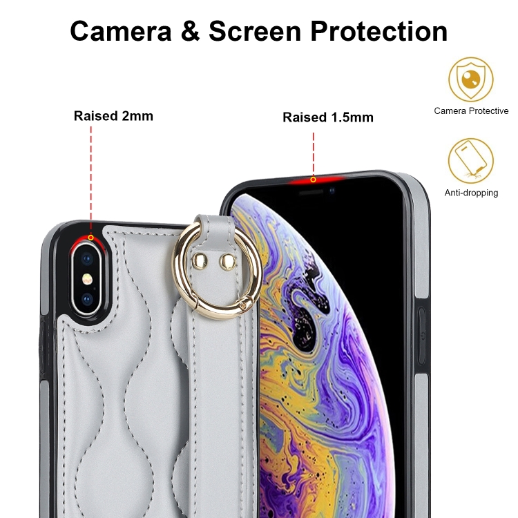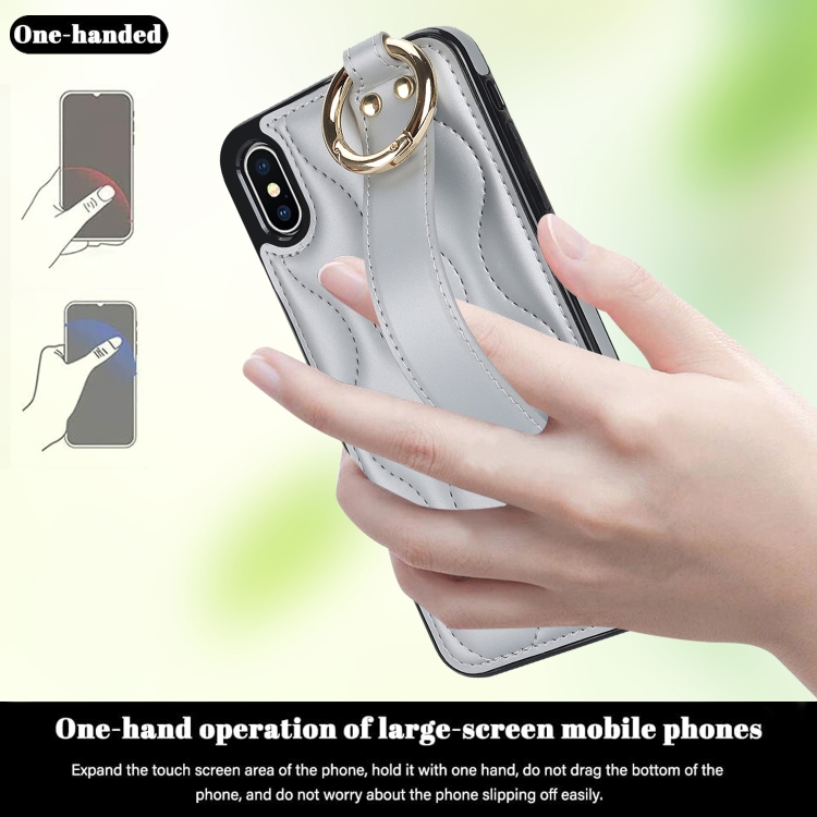 Funda para iPhone Xs / X de PU con Anillo de Cobertura Completa y Muñequera (Plata)