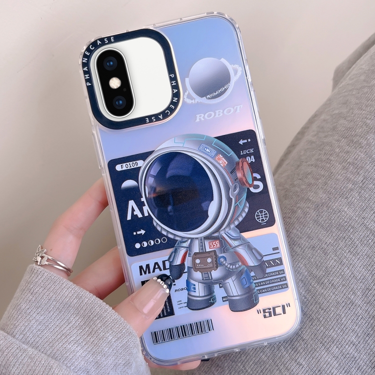 Funda de teléfono TPU para iPhone Xs / X patrón de Astronauta Mecánico (Azul)