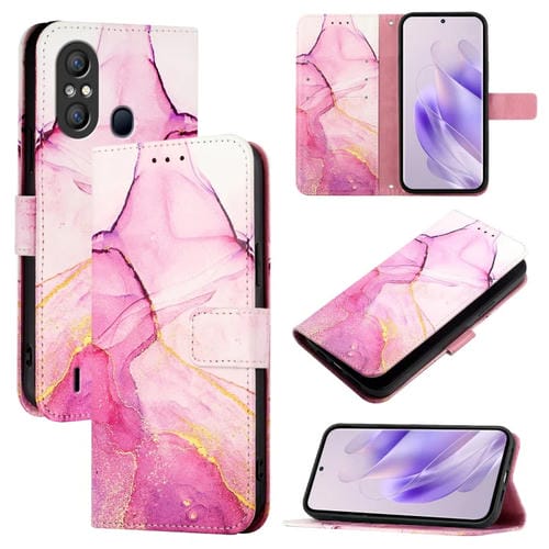 Funda para Teléfono Itel A58 A49 Pt003 Cuero con Tapa Patrón Mármol (Rosa, Morado y Dorado)