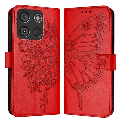 Funda de Cuero para Itel A60 / A60S con Mariposa en Relieve (Rojo)