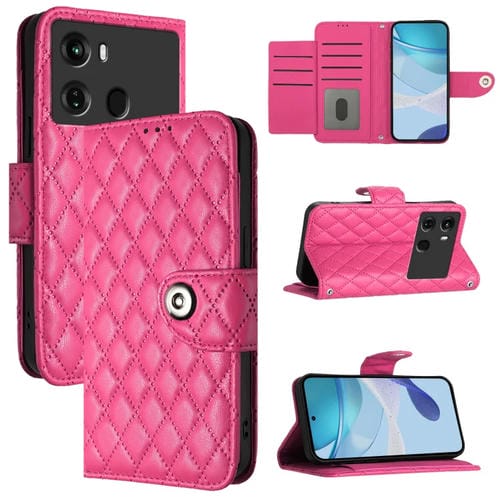 Funda para Itel P40 de Cuero con Tapa Textura Rómbica y Cordón (Rojo Rosa)
