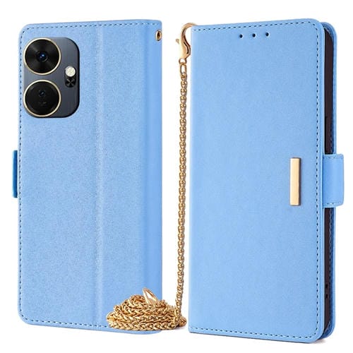 Funda de Cuero para Itel P55 + 4G con Cadena Cruzada (Azul)