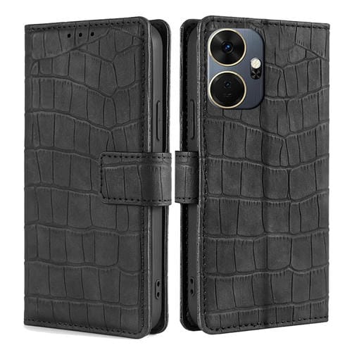 Funda de Cuero para Itel P55+ 4G con Cierre Magnético Cocodrilo (Negro)