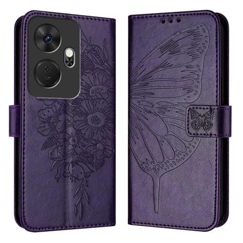 Funda de Cuero para Itel P55 con Mariposa en Relieve (Púrpura Oscuro)