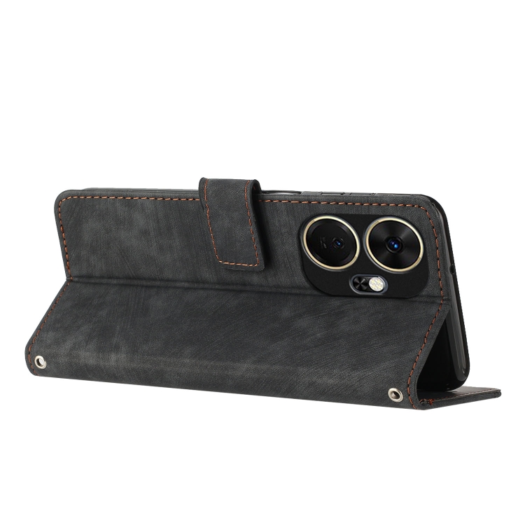 Funda de Cuero Skin Feel para Itel P55 con Patrón de Rayas y Cordón (Negro)