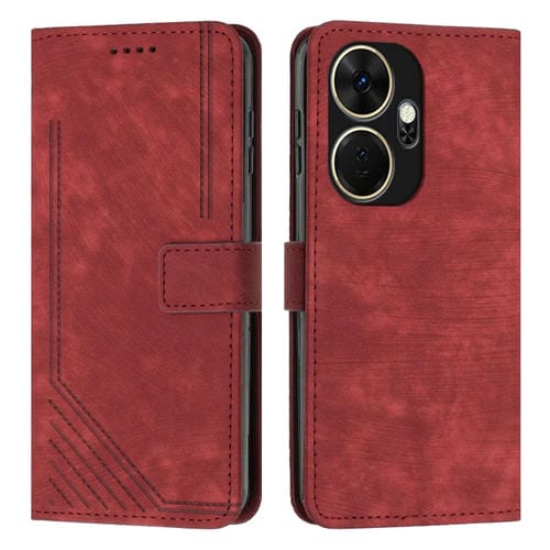Funda de Cuero Skin Feel para Itel P55 con Patrón de Rayas y Cordón (Rojo)