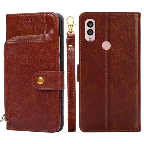 Funda de Cuero con Cremallera para Kyocera Android One S10 (Marrón)