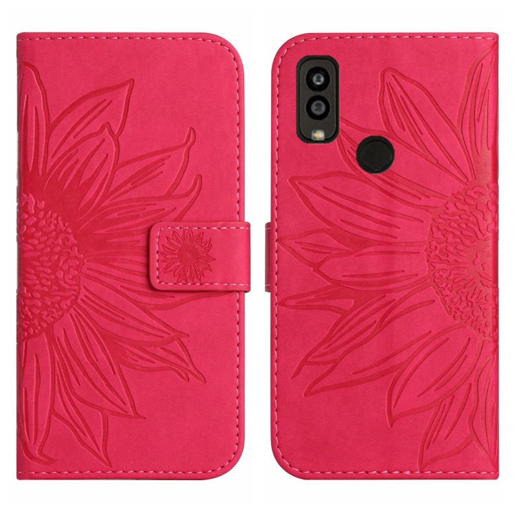 Funda Flip de Cuero Kyocera Android One S9 con Cordón y Diseño Sun Flower (Rose Red)