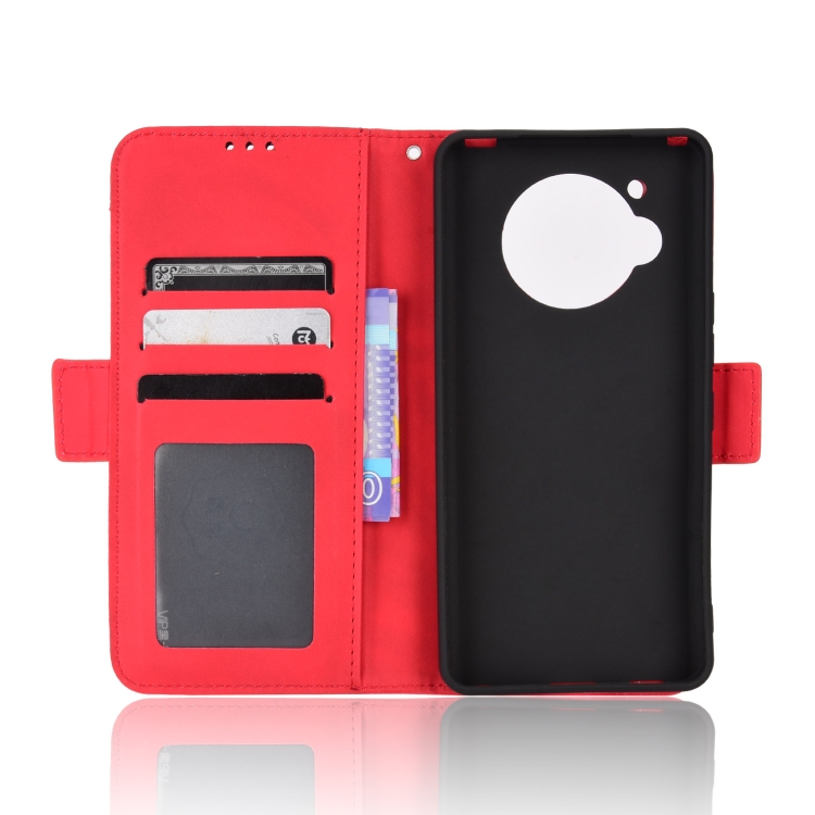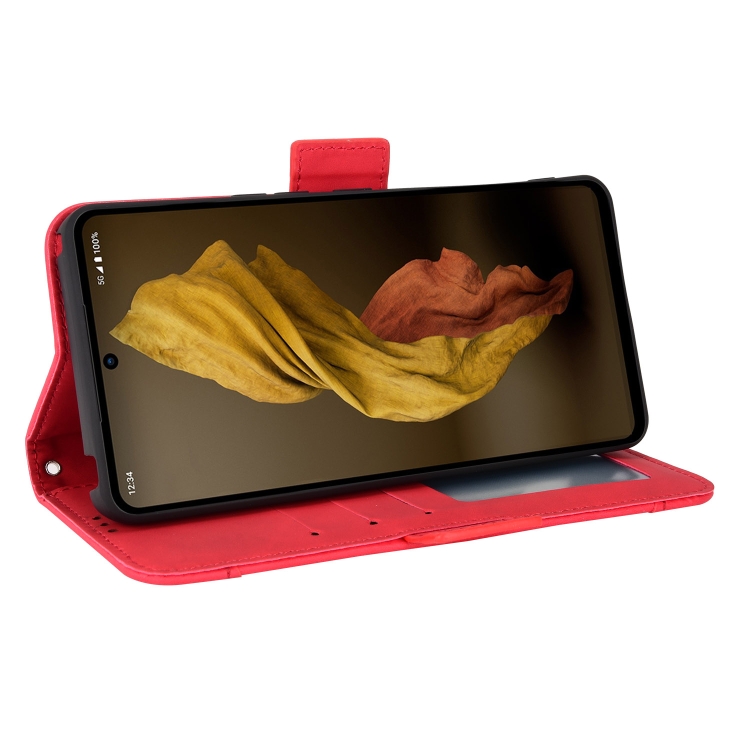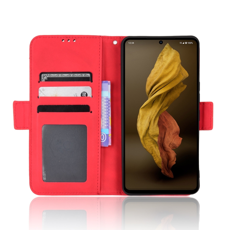Funda de Cuero para Aquos R7 con Ranuras y Textura de Ternera (Rojo)